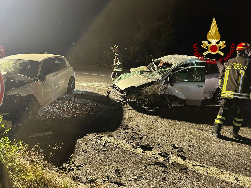 Altre due persone sono rimaste ferite, ma sembra in modo lieve. La dinamica dell’incidente è al vaglio dei carabinieri. Ai vigili del fuoco ed al personal sanitario del 118 si è presentata una scena drammatica, con due vetture ribaltate dopo lo scontro, presumibilmente frontale. Segno evidente dell’elevata velocità con la quale procedevano almeno alcune delle vetture coinvolte.