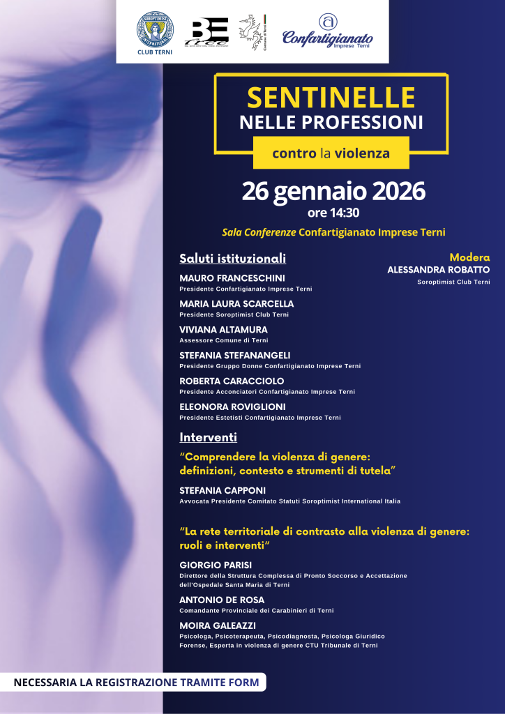 L’iniziativa si svolge in collaborazione con Soroptimist Club Terni, BE FREE e Comune di Terni.