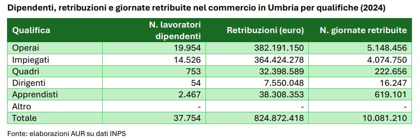 L’ultimo quaderno dell’AUR, con il focus sul commercio in Umbria, valuta anche le dinamiche del settore dal punto di vista occupazionale.