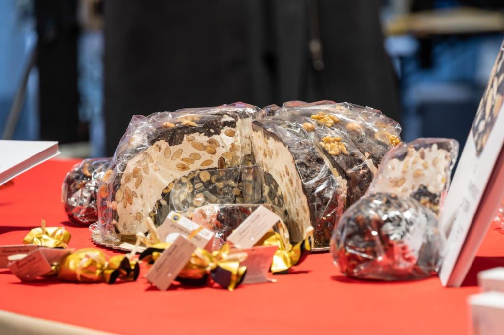 Un matrimonio, quello del 2022, da cui è nato il PanTorrone, sintesi di due eccellenze IGP e artigianali. Ne ha spiegato la composizione il maestro pasticciere Diego Petrelli: “Il panpepato da mezzo chilo, realizzato dai produttori artigiani ternani è il cuore di questa torta, ricoperto di torrone morbido bianco alle mandorle, realizzato ai Fratelli Rivoltini, poi guarnito ancora con il panpepato”. Con un consiglio per gustare al meglio questo dolce connubio: “Lo spicchio va assaggiato dando un morso al panpepato e poi, girandolo, con un morso al torrone”.