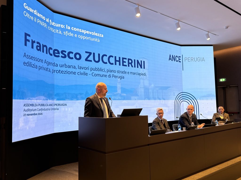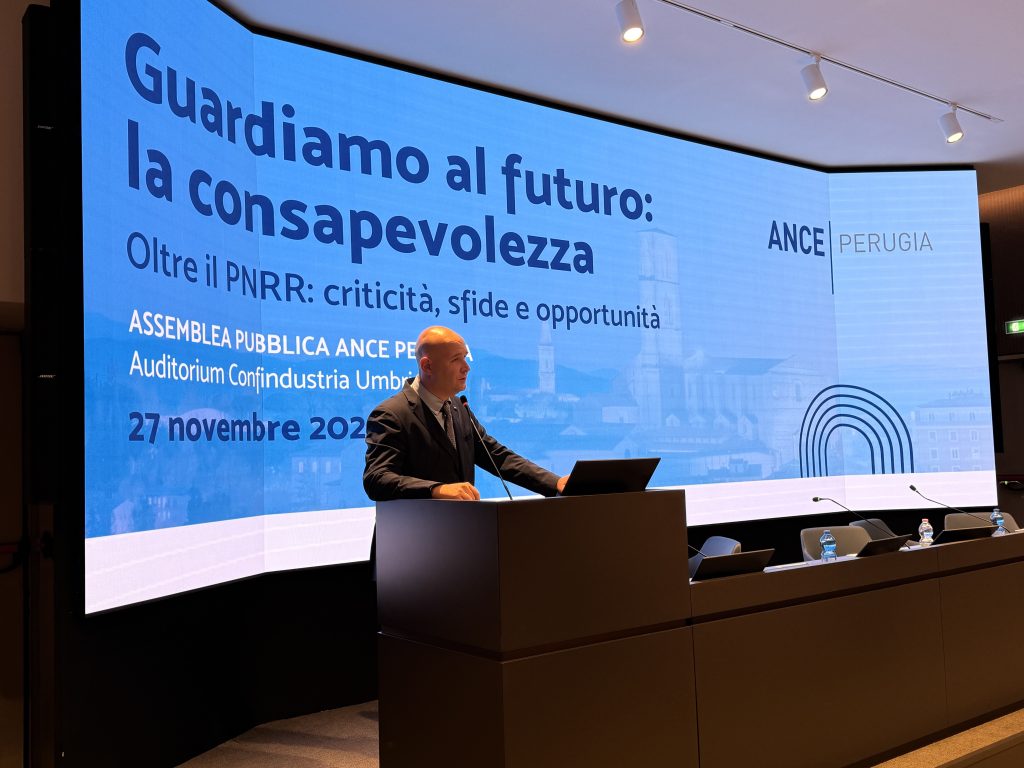 Di fronte ad un’economia umbra che nel prossimo anno si troverà ad un bivio, ANCE Perugia indica un percorso di confronto e collaborazione per arrivare alla redazione di un Piano fondato sull’interazione tra il quadro delle risorse disponibili, anche in vista della prossima conclusione dei cantieri del PNRR, e precise priorità per il territorio. E’ la proposta lanciata dal presidente di ANCE Perugia, Giacomo Calzoni, nel corso della parte pubblica dell’Assemblea dell’Associazione Nazionale Costruttori Edili della Provincia di Perugia. Il convegno intitolato “Guardiamo al futuro: la consapevolezza – Oltre il PNRR: criticità, sfide e opportunità” ha visto gli imprenditori di ANCE confrontarsi sui temi dello sviluppo sostenibile, delle infrastrutture e degli investimenti con i rappresentanti istituzionali (Gianluca Paggi, Direzione Governo del Territorio, Ambiente, Protezione civile, Riqualificazione urbana, Coordinamento PNRR, che ha letto un contributo dell’assessore Francesco De Rebotti; l’assessore comunale di Perugia Francesco Zuccherini, il presidente della Provincia di Perugia Massimiliano Presciutti).