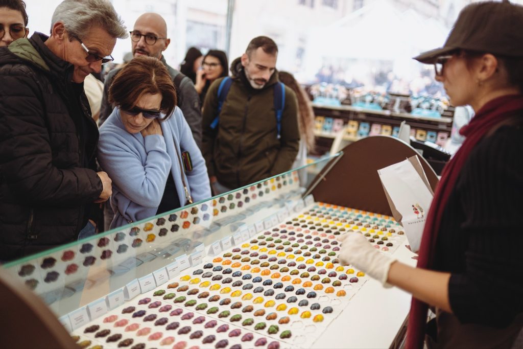 Affollatissimi i golosi stand del Chocolate Show, il più grande emporio del cioccolato a cielo aperto che accoglie la vasta proposta di prodotti in vendita per un totale di 180 aziende e circa 6.000 referenze, a partire dalle nuove e coloratissime nuvolette di cioccolato, firmate Costruttori di Dolcezze, prodotte artigianalmente in collaborazione con la maître chocolatier Alice Cianuri.