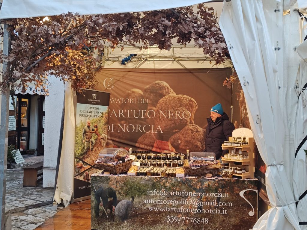 Dopo l’inaugurazione, sulle note del Complesso bandistico Città di Norcia, il corteo istituzionale ha attraversato il centro storico e ha raggiunto il DigiPass per i saluti istituzionali. I circa 60 stand della mostra mercato ospitano oltre al tartufo nero pregiato e ai prodotti del paniere locale come il prosciutto Igp di Norcia, norcinerie, formaggi e legumi, le tipicità di quasi tutte le regioni Italiane, dal Piemonte alla Puglia, dal Veneto alla Sardegna. Fuori Porta Ascolana, poi, trova posto tutto il mondo legato all’agricoltura, dalle macchine da lavoro alle associazioni di categoria.