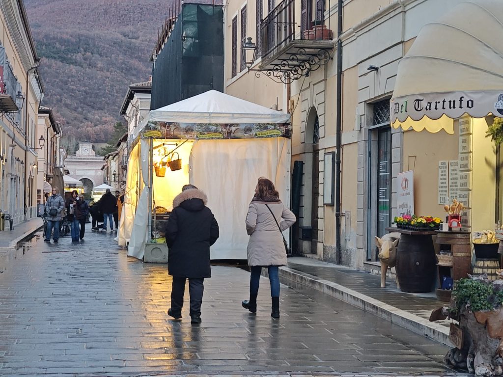 Un clima di festa e l’entusiasmo di una comunità che vede i segni tangibili della ricostruzione e di una rinascita ormai avviata hanno accompagnato l’apertura dell’evento che rappresenta un palcoscenico nazionale per le eccellenze locali e un’occasione privilegiata di promozione del territorio in una città che ritrova i suoi luoghi simbolo, a partire dalla Basilica di san Benedetto. In tanti non sono voluti mancare all’appuntamento e al taglio del nastro, insieme al sindaco di Norcia Giuliano Boccanera e a tutta la giunta comunale, c’erano Francesco De Rebotti, assessore allo sviluppo economico della Regione Umbria, Guido Castelli, commissario straordinario per la ricostruzione Sisma 2016, Michele Boscagli, presidente dell’Associazione nazionale Città del tartufo di cui Norcia è socio fondatore, Pietro Bellini, presidente del Gal Valle Umbra e Sibillini e la consigliera regionale Paola Agabiti.